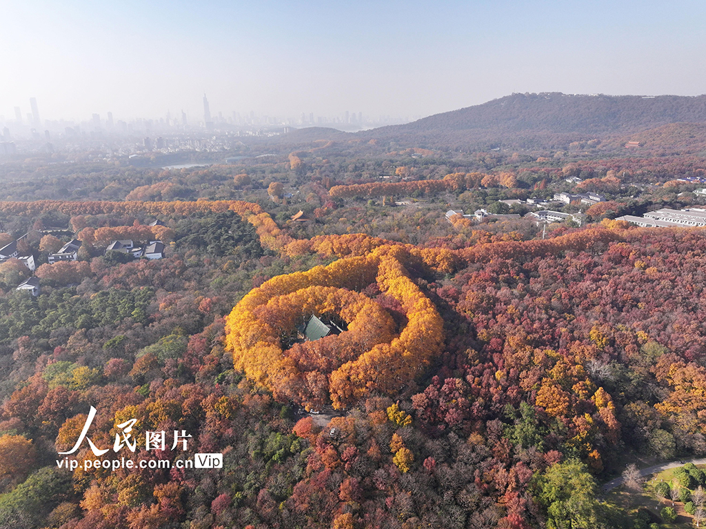 初冬时节,江苏扬州史可法纪念馆内银杏树迎来最佳观赏期,吸引众多游客前来观赏留影。孟德龙摄(人民图片网)