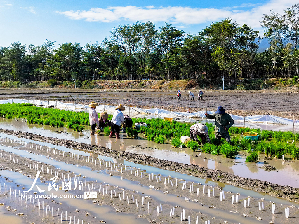 冬至时节,空中俯瞰蓝天白云掩映下的江苏省苏州市虎丘湿地公园,层林尽染,色彩斑斓,构成了一幅壮美的生态湿地画卷。王建中摄(人民图片网)