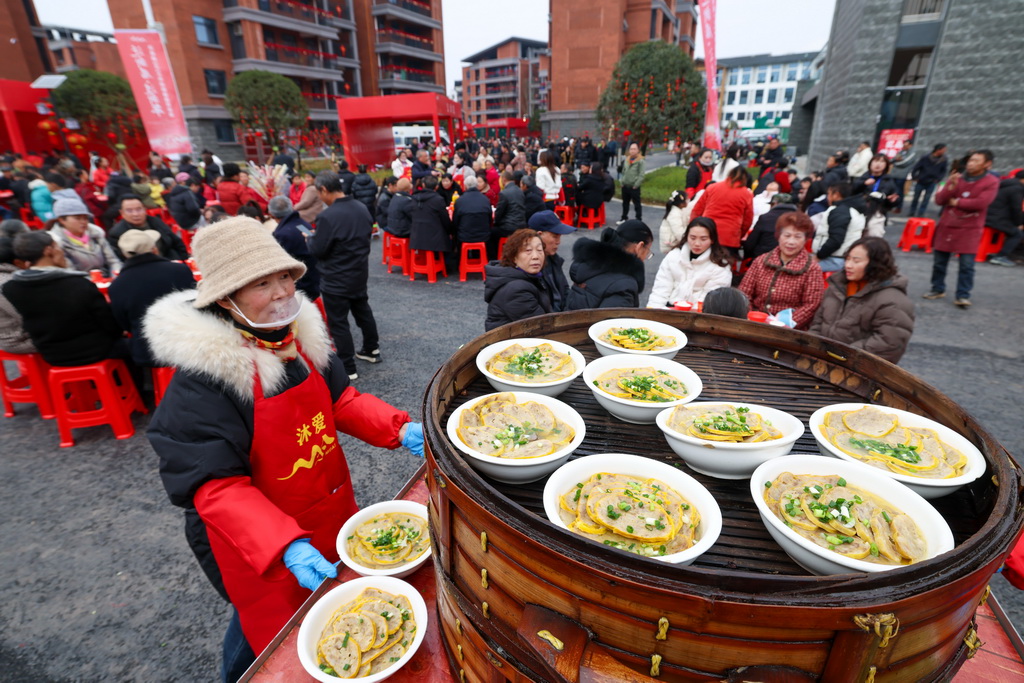 临近春节,浙江省杭州市临平区塘栖镇莫家桥村举行传统民俗过大年活动,在水乡河边搭建戏台,上演舞蹈、武术、传统越剧等节目,同时在现场进行打年糕、写春联、做米塑等活动,重现了水乡古镇传统的过年民俗,为即将到来的新春佳节营造浓浓的喜庆气氛。新华社记者 徐昱 摄