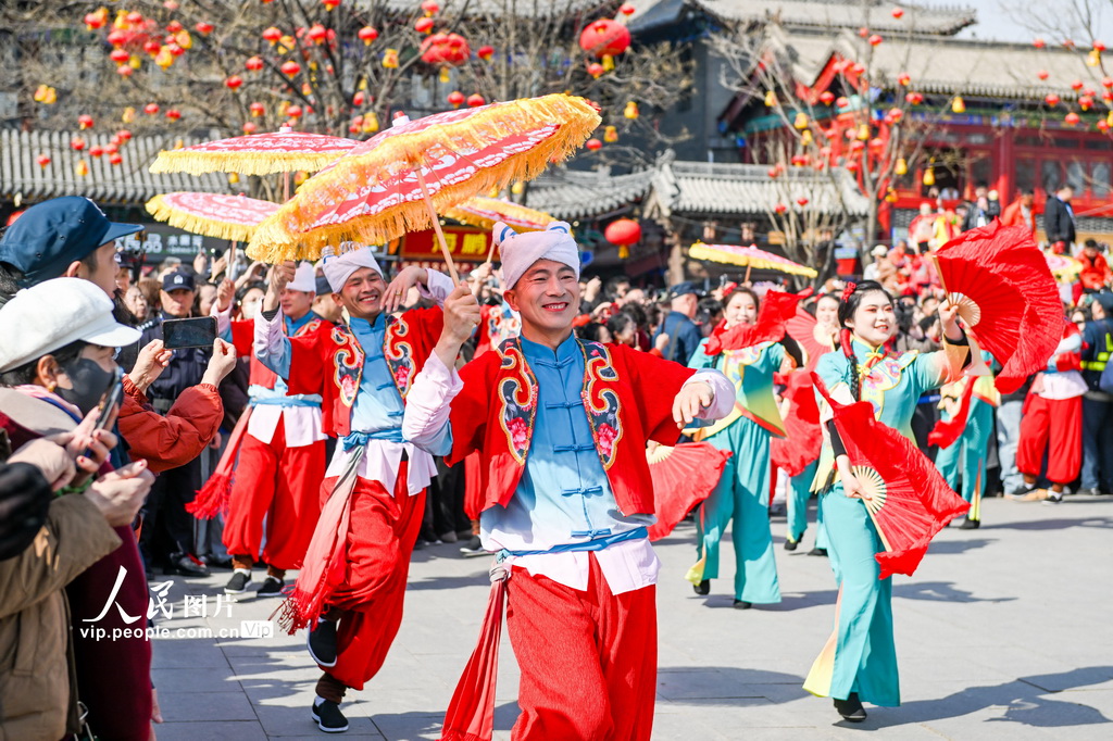 春暖花开时节,江苏省兴化市千垛景区的油菜花竞相绽放,金黄的油菜花海与垛田、河流构成一幅美丽的春日画卷,吸引众多游客前来赏花游玩,感受春日气息。孟德龙摄(人民图片网)